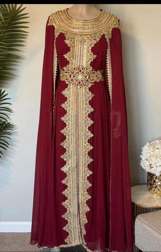 Dark Red chiffon caftan/ Abaya