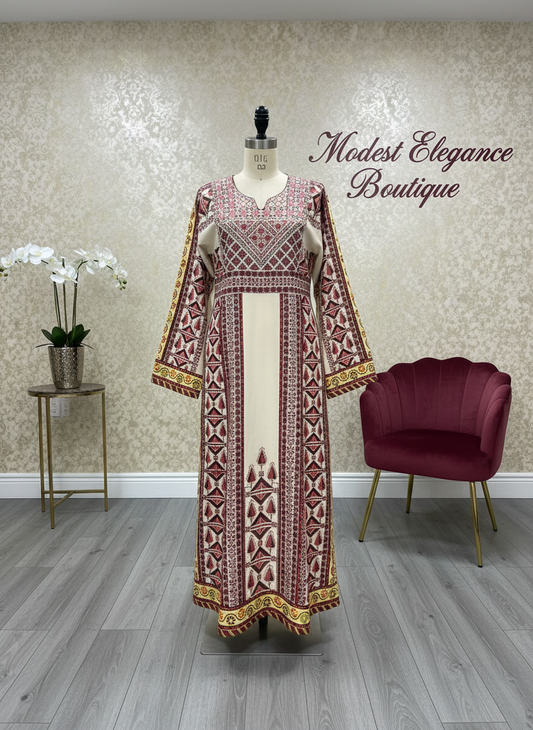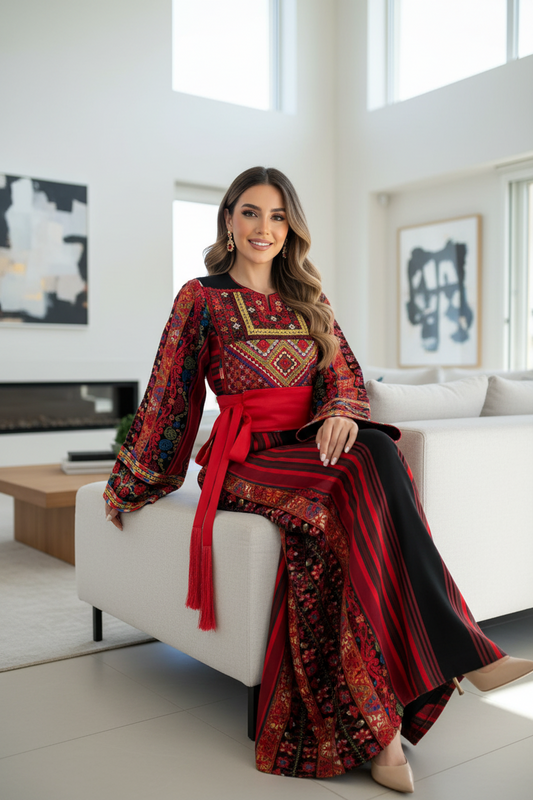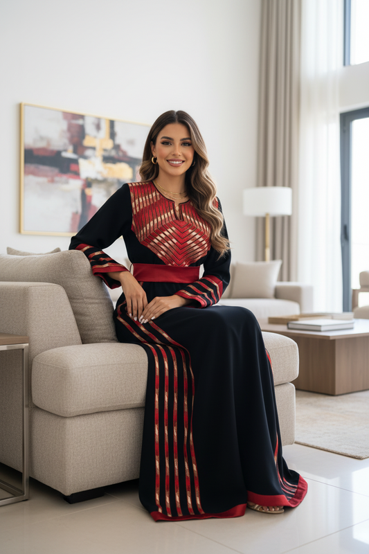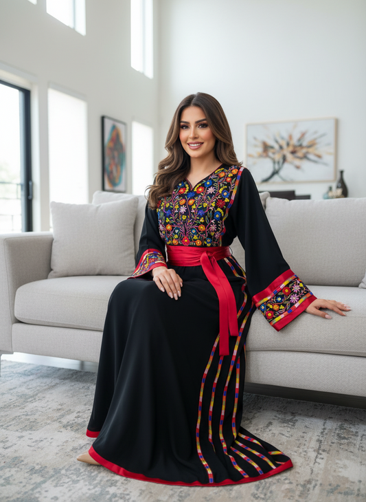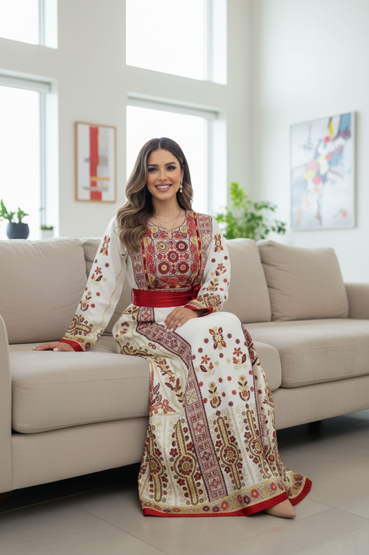 Ready -made white thobe embroidered belt and satin belt included. 2-3 days for shipping.