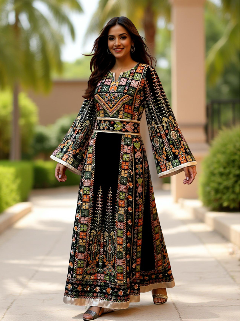 Ready made black and olive Doreen thobe with matching belt . No return or exchange