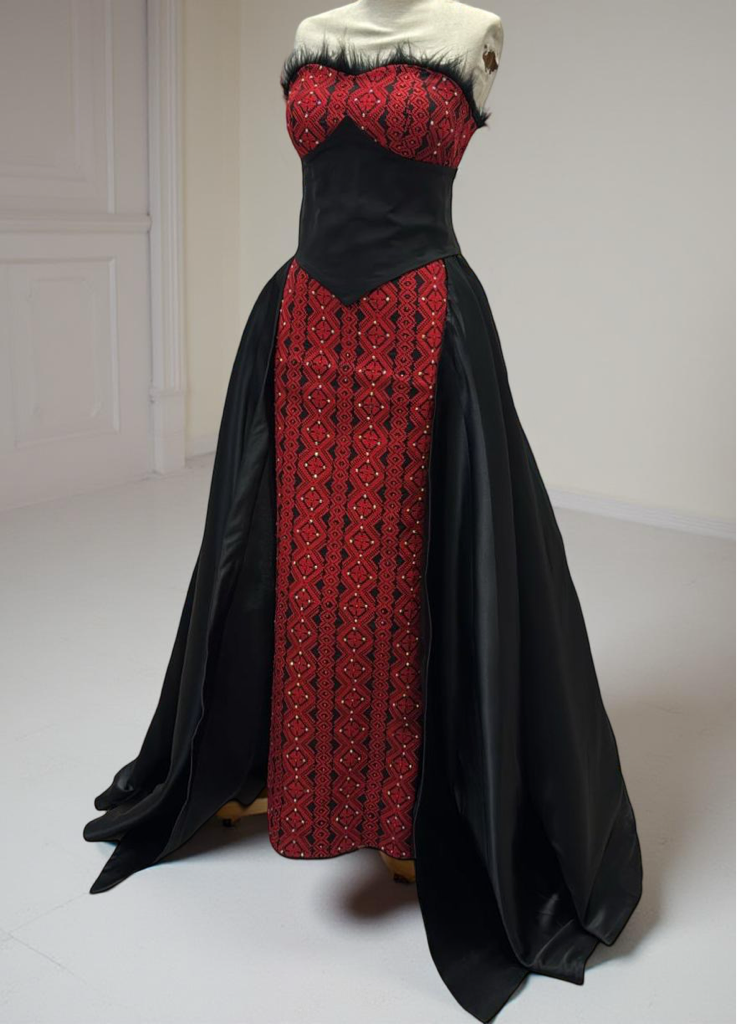 Custom-made all sizes black and red sleeveless dress if you’re interested in a sleeves, we can add them for you