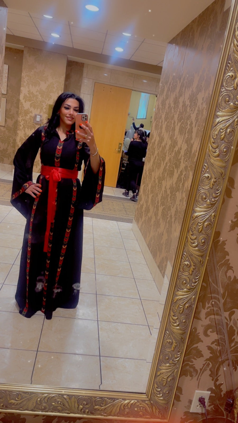 Looking for a simple, elegant dress with high quality materials? Check out this dress with front and back embroidery and a matching satin belt. Available in all sizes and ships in 2-3 days.